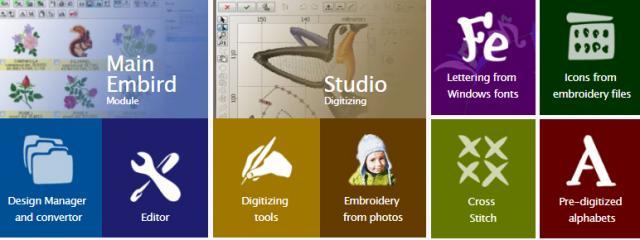Az Embird egy professzionális szoftver a számítógépes hímzéshez. Ez a program 70 különböző hímzési fájlformátumot, valamint 20 hímzőgépet támogat, mint az egyik legjobb hímzés- és szövettervezési program.